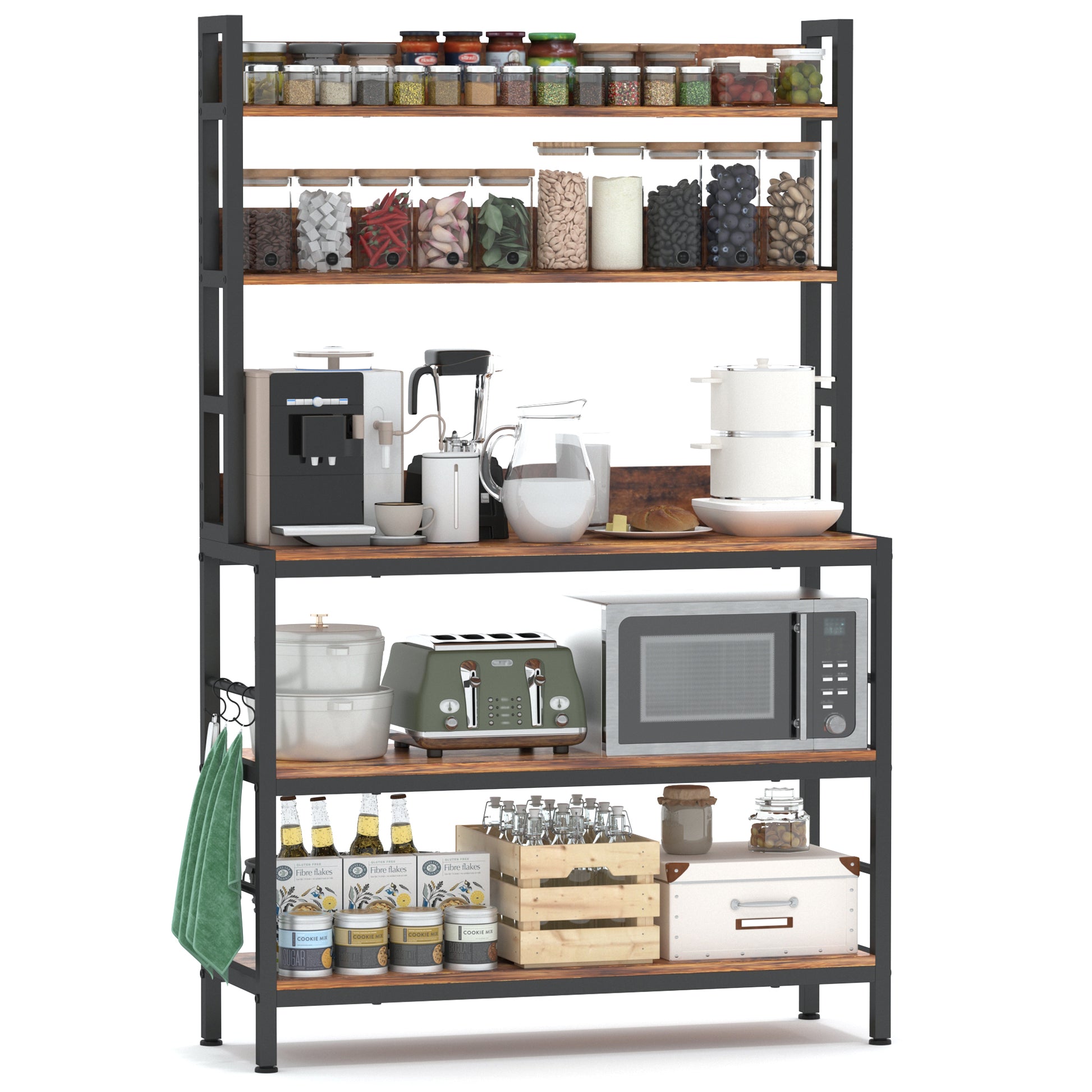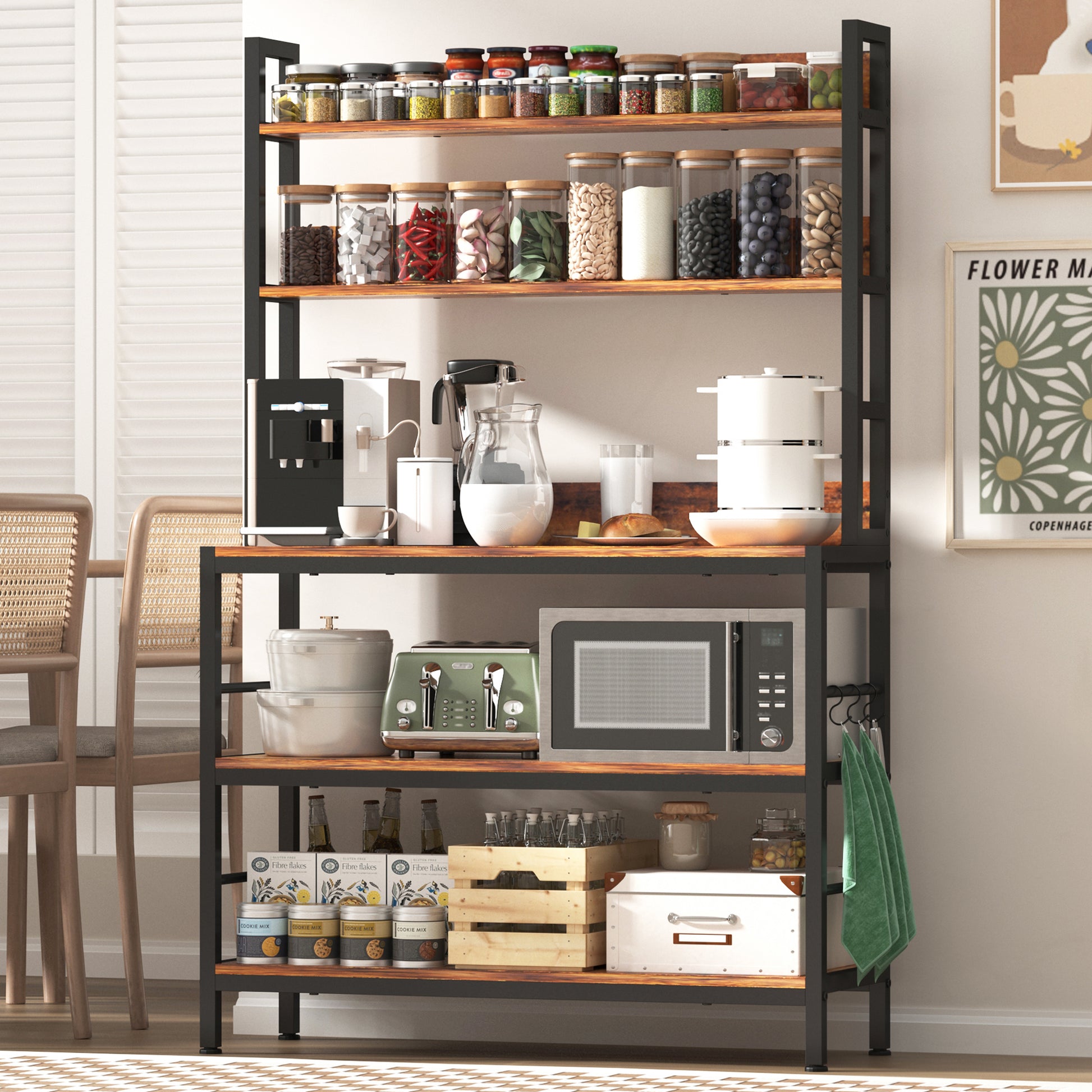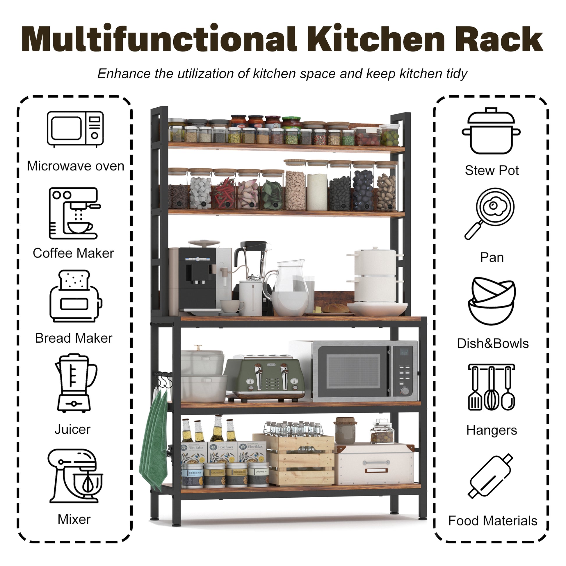 - 【Large Capacity】 size:62.41" x 39.38" x 13.39" ,This bakers rack is tall enough to store your microwave, coffee machine, juicer and 5-tier coffee bar stand design to store toaster, fryer, sauce bottles and any other household items.