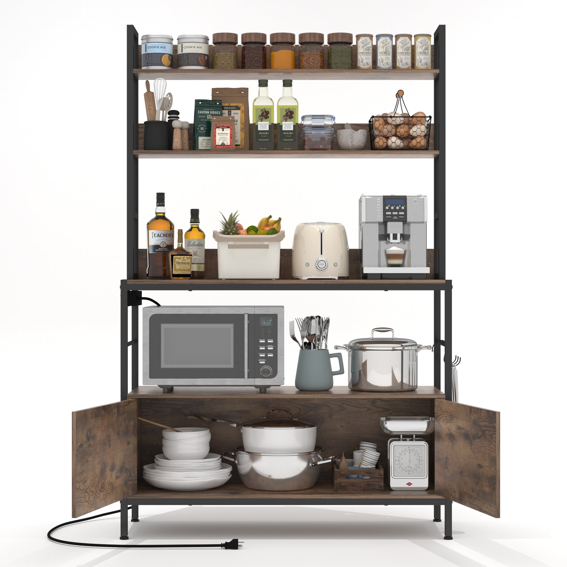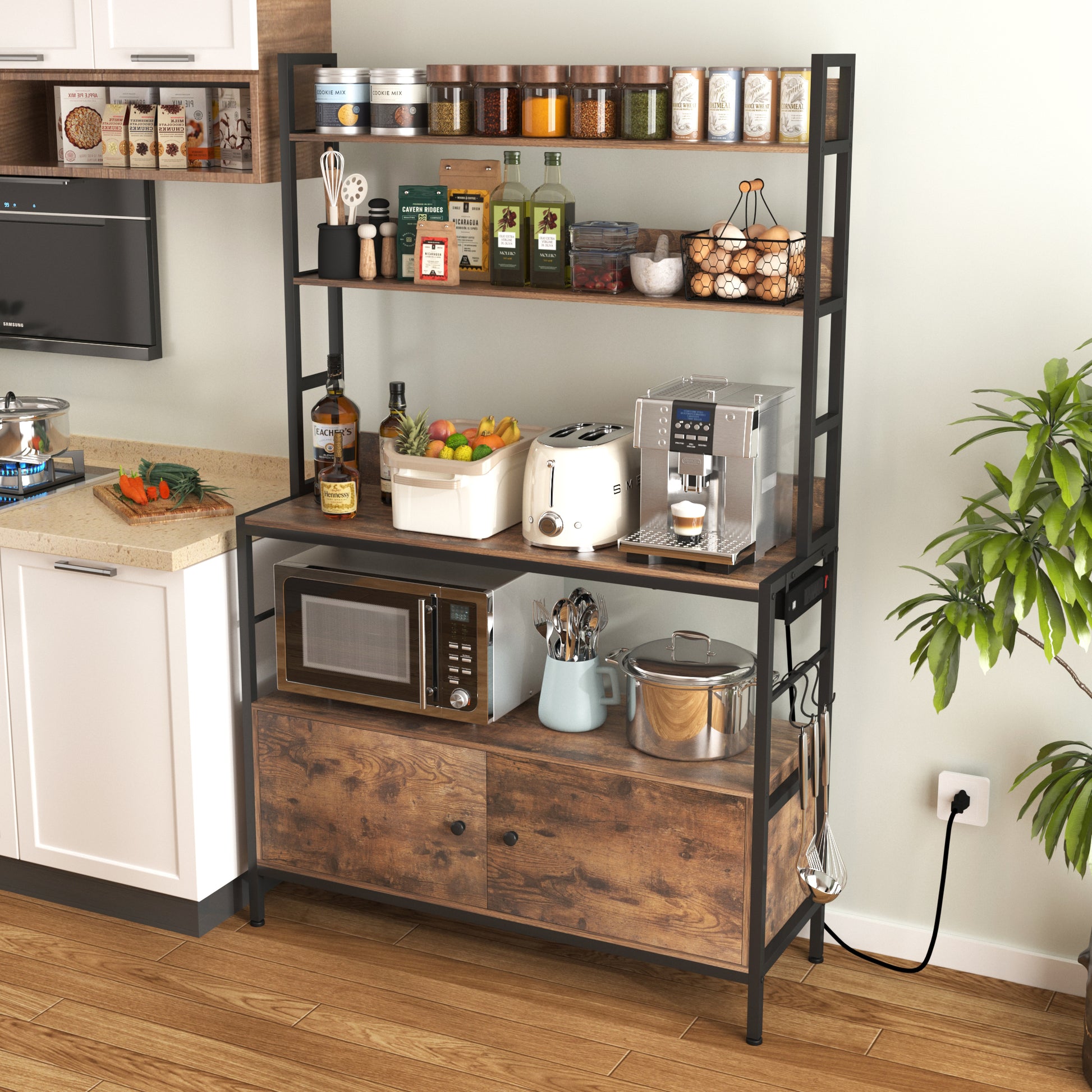 - 【Large Storage Capacity】 This bakers rack come with a total of 2 bottom shelves,2 top shelves and 1 cabinet, this microwave rack is an excellent storage option for the eat-in kitchen. It is ideal for holding microwave, oven, and some of your other kitchenware or bits and pieces, as well as storing spice, plate dishes, and any other things you want