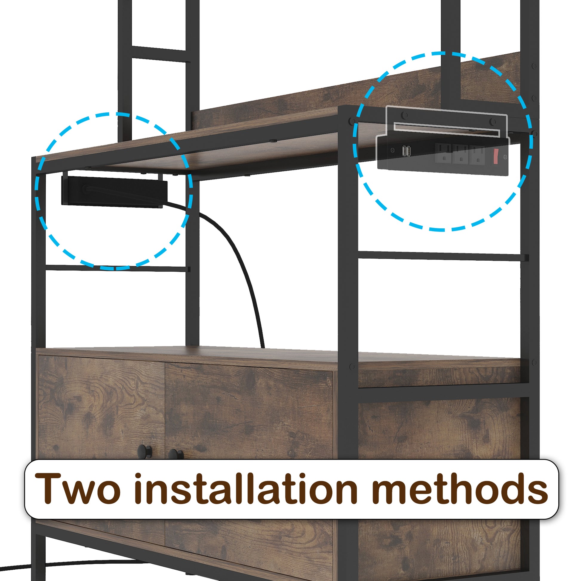 - 【Power Outlets】 Our bakers rack is equipped with 3 AC outlets, 2 USB charging ports to provide power for up to 5 devices simultaneously. The switch is convenient and safe to turn off power, no need to unplug appliances at all times. This 5 tier bakers rack with storage can easily keep the room tidy.