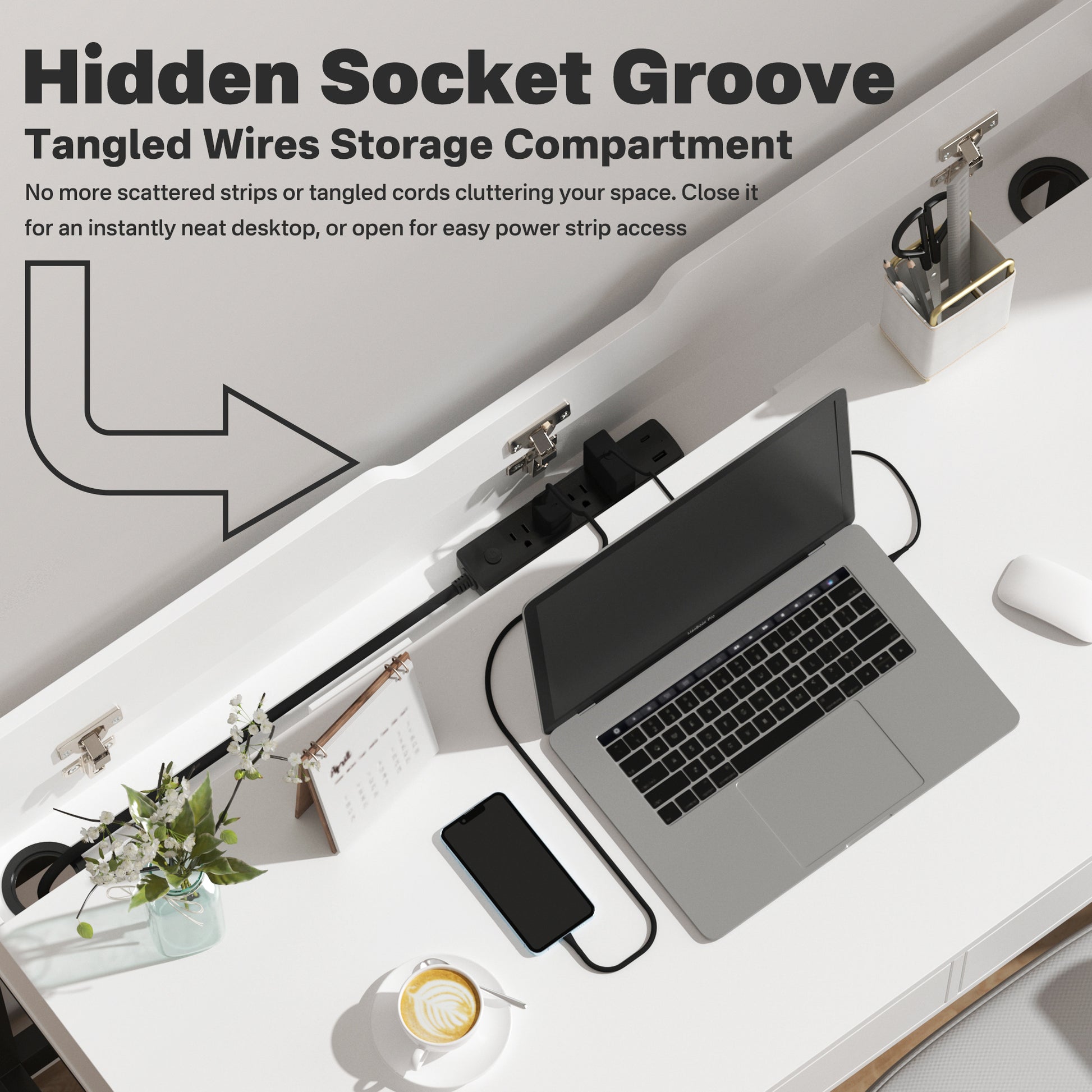 【Flip-Top Design with hidden Compartment】The lift-up tabletop reveals a hidden storage area, perfect for cables, power strips, notebooks, or tools you want out of sight but within reach.